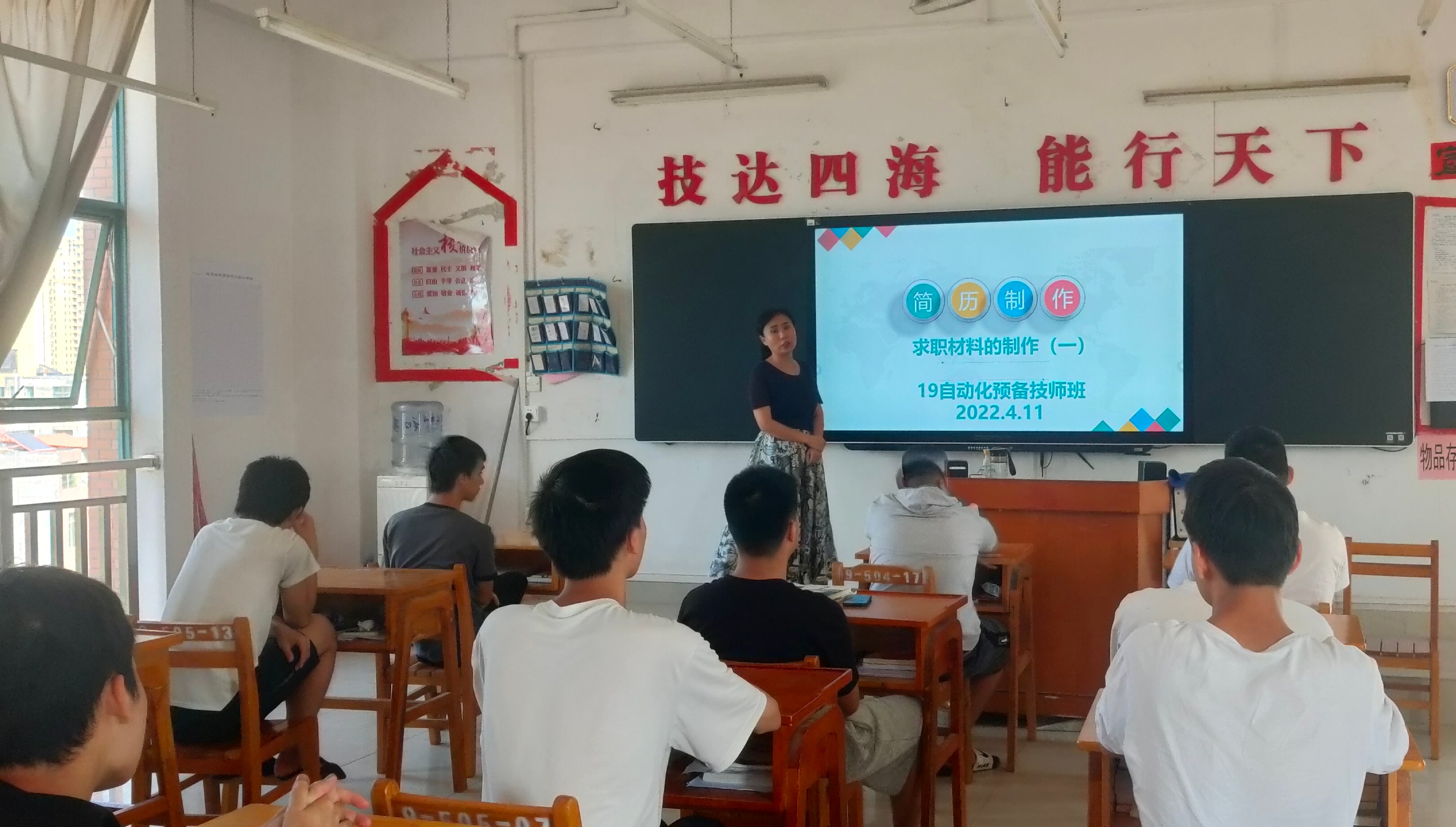职场扬帆,逐梦启航——2019级电气自动化预备技师班开展就业指导讲座 2022年4月11日星期一下午,2019级电气自动化预备技师班在9505举办就业指导专题讲座。本次讲座由班主任石俊杰老师主讲,班级全体同学参加本次讲座。石老师细致、准确为同学们讲解简历的制作、笔试面...