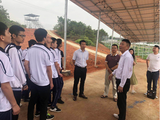 为了解国内外光伏产业形势,加强专业知识学习与社会实践相结合。2019年5月14日上午,我院教务科杨耀雄科长、电气应用系张雪峰主任、谷瑞光副主任、刘志奎老师、邓晓菲老师和光伏专业全体学生共43人赴广东全日科技太阳能有限公司位于紫金县的光伏扶贫产业示范基地参观学习。