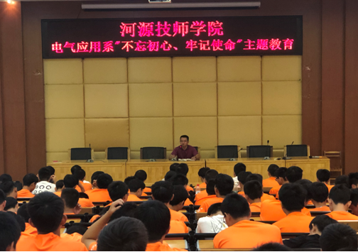 2019年9月30日上午,电气应用系党支部在培训楼讲学厅召开2019级师生“不忘初心、牢记使命”主题教育宣讲会。会议由电气应用系党支部书记张雪峰主持,党支部纪律委员钟伟东、党支部组织委员谷瑞光,以及2019级全体师生共300多人参加了会议。