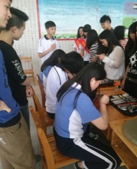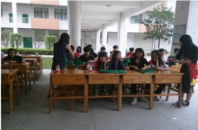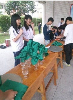 (图一)酒店专业的学生正在展示餐饮折花技能