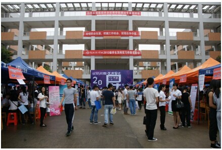 6月20日,我校在培训楼广场举行2012级学生顶岗实习供需见面会。近60家企业携逾1800个岗位到校“招兵买马”,吸引了1000多名毕业生进场求职。参加见面会的本地企业占85%,其中不乏西可通信技术设备(河源)有限公司、广东汉能光伏有限公司等知名企业。