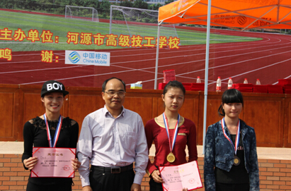 (图一)刘俊侃副校长与女子跳高获奖选手合影
