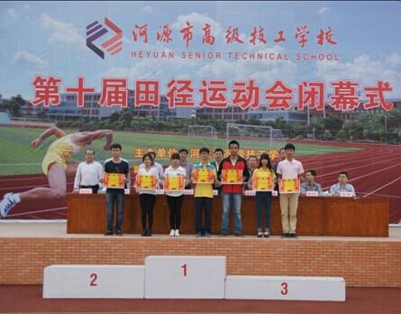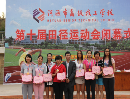 本届运动会共有9个运动代表队约1200名运动健儿参加了25个项目的激烈角逐, 40余名师生在运动场上实现了冠军梦想。其中,13室内设计高级2班获得学生组团体第一名,行政后勤组获得教职工组第一名;13会计5班等7个班级获得体育道德风尚奖,青年志愿者协会等7个社团获得“优秀社团”称号。值得一提的是,徐小龙、陈桦江两位同学双双刷新了男子三级跳远的纪录。