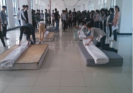 为了加强同学们对内务的重视,学校宿舍区举办了第五届宿舍文化节之叠被子比赛。比赛于11月25日下午在实训楼B栋401室正式开赛,全校同学满腔热情,积极参与。