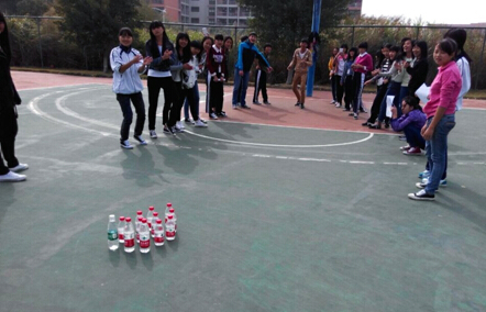 11月18日上午,2014级旅游1班“趣味运动会”如期在学校篮球场举行,全班37名同学积极参与。据班主任陈伟宁介绍,此次运动会设置了定点投篮接力赛、抛绣球、趣味保龄球、海底捞月、一脚定乾坤等近20个趣味比赛项目。每一个比赛项目不仅可以锻炼同学们的协调能力,同时展现了同学们在学习生活中团结协作的精神。这既是智慧和体力的角逐,更是团结和协作的完美比拼。