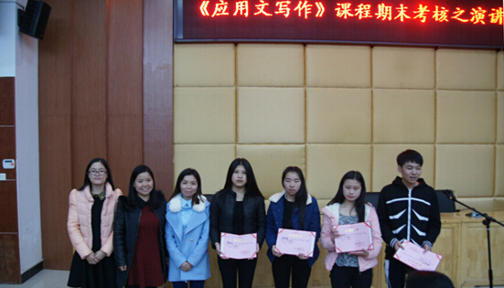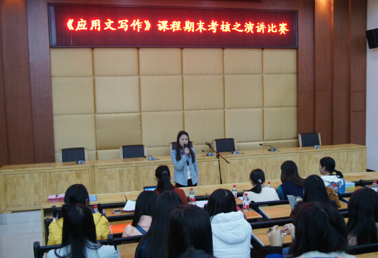 2015年1月8日晚,我校在培训楼讲学厅举行了《应用文写作》课程期末考核之演讲比赛,以活动的形式对学生进行课程综合考核。