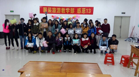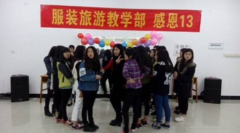 为帮助2014级学生会新干事加深对学生会的了解和认识,尽快融入学生会生活,同时表扬2013级“老干部”们对学生会一年来付出的努力,1月12日晚上,旅游服装教学部学生会在实训楼B401室举办了“感恩13”交流晚会。教学部李娜主任,罗丹副主任,团支书曹保利老师出席了本次晚会。