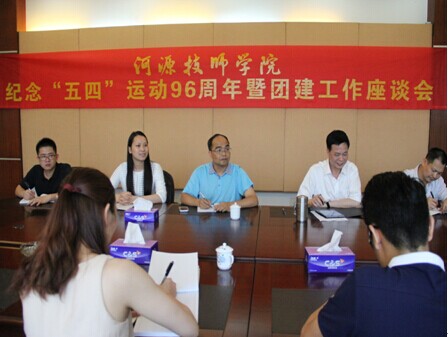 在五四青年节即将来临之际,为更好继承和发扬“爱国、进步、民主、科学”的五四精神,4月29日下午,我院举行纪念五四运动96周年暨团建工作座谈会。学院院长黎海波同志出席座谈会并讲话。副院长刘俊侃、学生科科长黄志平、副科长柳铁非、团委书记骆晓红、副书记梁弘宇参加了会议。各系团总支书记、团学干部代表做了典型性发言。