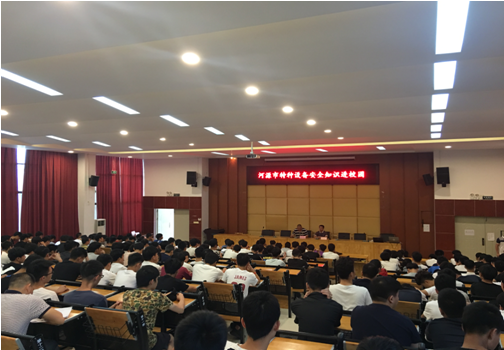 2018年6月27日下午,为进一步做好特种设备安全知识的宣传,营造“关爱生命、关注特种设备安全”的良好宣传活动氛围,提升学生的安全意识和增长安全知识,我院与市质量技术监督局联合举办了特种设备安全知识进校园活动。学院师生460多人参加了活动。