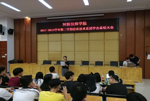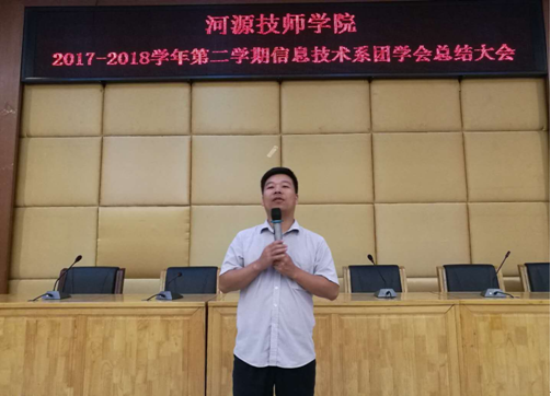 为总结信息技术系团学会在这一个学期以来的学习情况和工作表现,更好地推动团学会的发展,提升团学会成员的工作热情和工作质量。信息技术系于2018年6月25日晚在讲学厅召开了总结大会,巫骑伟副主任出席,2017级全体团学会成员共同参加了会议。