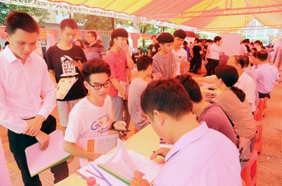 据悉,今年河源技师学院共有1585位2015级学生圆满完成学业,1130位2016级学生走向实习岗位。当天的顶岗实习供需见面会243家企业,共3300多个岗位向同学们伸出了橄榄枝。