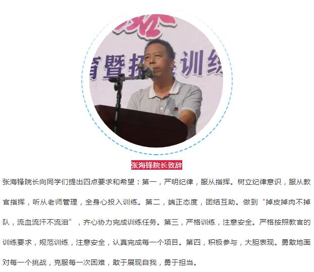 希望同学们铭记这次训练经历,把在训练过程中养成的良好品德和作风带到今后的学习中去,认真上好每一节课,扎实练好每一项技能;在生活上高标准、严要求规范自己的言行,养成良好的行为习惯和生活习惯;牢固树立纪律意识,模范遵守学校的各项规章制度,在技师学院成为最好的自己!