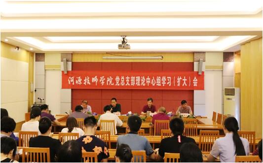 2018年9月13日下午,我院在一号楼大会议室召开了党总支部理论中心组学习(扩大)会议。会议由学院党总支部书记张海锋同志主持,学院党总支部委员、中层管理干部(含副职)、教学系正副主任和全体支部委员参加了会议。