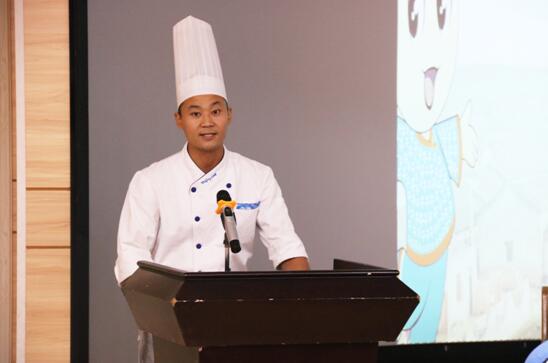 (图四)客家金牌师傅、河源技师学院烹饪专业教师谢志海发言