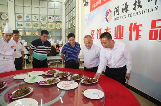 2018年10月30日上午,我市“客家菜师傅”人才培养基地在河源技师学院揭牌,这标志着我市正式启动实施“客家菜师傅”工程,着力促进城乡劳动者技能就业、技能致富,全面提升就业创业水平,助推乡村振兴发展。市委组织部副部长、市人社局局长邓小强,市人社局副局长罗文才,河源技师学院院长张海锋出席揭牌仪式,市人社局培训科科长刘戈文,河源市餐饮行业协会副会长陈建成,来自餐饮企业的领导嘉宾、客家菜师傅,以及河源技师学院领导班子成员、烹饪专业师生等参加了仪式。
