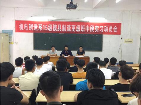 机电制造系模具制造专业学生中段实习即将开启,学院高度重视此项工作,召开动员会让学生明确了实习过程的各项情况,加深学生对校外中段实习各项流程的认识,确保实习的有序实施。企业也对非常欢迎实习学生,并开展了岗前培训,让学生尽早适应工作岗位,提高学生对职场的适应能力和工作能力。实习学生表示,校企双方都非常重视我们,我们一定学有所成,不负期望,为就业做好准备。