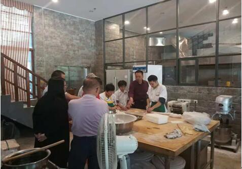 教材开发团队先到梅州大埔小吃文化城,深入了解了梅州当地的客家点心品种、客家点心的制作工艺、粄文化以及培训模式等内容。随后到梅州农业学校与中国烹饪大师、国家高级烹调技师陈钢文老师研讨,确定培训教材的客家风味菜和客家点心,以及研讨培训模块设置、课时分配、工匠精神如何融入教材等问题。