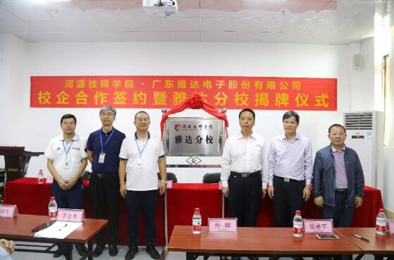 我院与雅达联姻共建“厂中校”——雅达分校,是学院与雅达校企合作向纵深方向进一步拓展的重要体现。一方面,学院将师资队伍、教学方法、教学资源等开到企业家门口,与企业共建实习、培训基地,面向学生、企业员工乃至全社会开展职业技能培训,提高学院社会贡献率。另一方面,企业也将在家门口完成对员工的职业技能培训,极大地减轻企业对技能人才培养的成本,促进企业发展。同时,雅达分校将为学院师生提供实习实训的平台,师生可以直接了解行业的最新资讯,学习企业先进的生产技术,提高专业技能和教学质量,从而提高人才培养质量,为河源建设成为我省绿色发展示范区,融入粤港澳大湾区生态排头兵,走出生态河源现代河源相得益彰发展新路做出应有的努力和贡献。