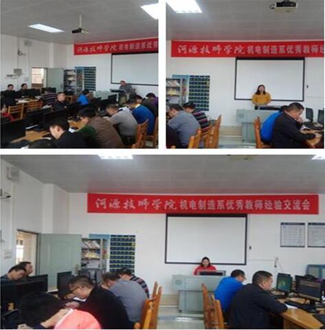 为进一步加强教师、班主任队伍建设,提高教师的教学水平和班级管理水平,促进教育教学再上新台阶。2018年11月19日下午,机电制造系在6号楼203室召开了优秀教师经验交流会。学院张海锋院长出席,机电制造系龙卫军主任、刘会平副主任和黄志平副主任及该系全体老师参加了会议。