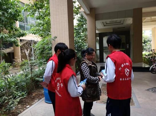 (图一)志愿者学生进社区发放阅读资料