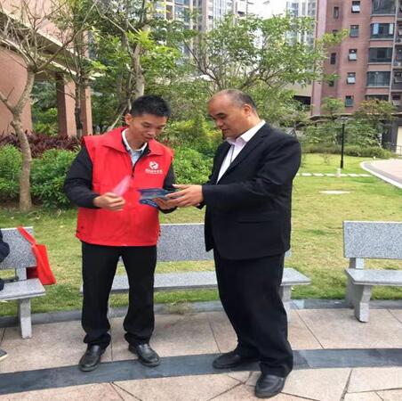 (图四)志愿者老师到社区发放宣传资料