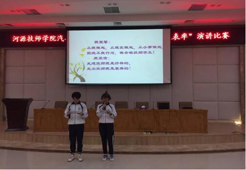 比赛过程精彩激烈、高潮迭起。参赛选手图文并茂地演讲了身边或社会中违纪违规的现象,深刻地分析了违纪违规的严重后果,强调了遵规守纪的重要性,并号召同学们要做一名合格的中职生。
