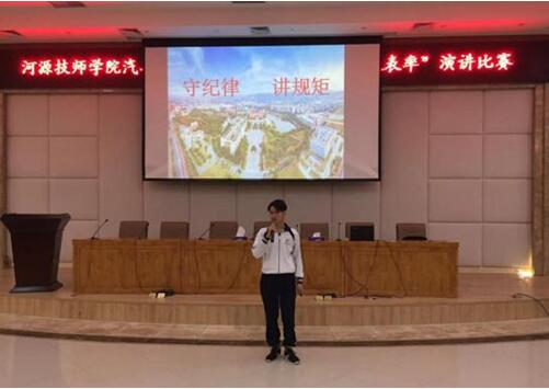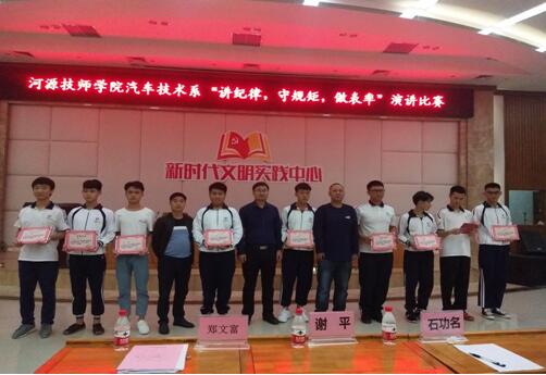 为严格规范学生日常行为,提高思想认识,更好地成长为德才兼备的技能人才,2018年12月5日,汽车技术系在图书馆报告厅举办了“讲纪律、守规矩、做表率”演讲比赛。汽车技术系党支部书记、主任石功名,副主任谢平,系团总支书记郑文富出席,专业教师李发船、艾文军、梁海深和张宇飞担任比赛评委。