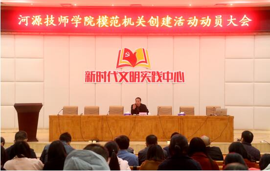 2018年11月5日下午,我院在图书馆报告厅召开模范机关创建活动动员大会,认真学习贯彻习近平总书记关于加强党的政治建设的重要论述和对推进中央和国家机关党的政治建设重要指示精神,认真贯彻落实省直机关党的政治建设推进会精神特别是省委书记李希同志讲话精神,对学院开展模范机关创建活动进行动员部署。学院党委书记张海锋作动员讲话,学院全体党员参加了此次会议。