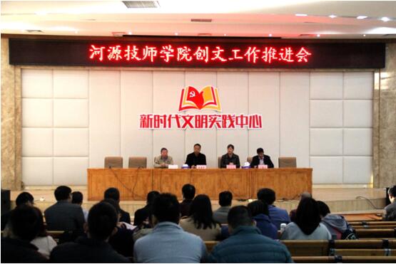 为进一步做好创文工作,为河源创文贡献力量,2018年12月17日,我院在图书馆报告厅召开创文工作推进会。全体教职工参加了会议。