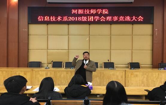 为进一步壮大团学会队伍,充分发挥团学会的主体作用,更好地服务师生。12月27日晚,信息技术系在培训楼讲学厅举行了2018级团学会理事竞选大会。信息技术系巫骑伟副主任出席,2017、2018级团学全体成员参加了会议。