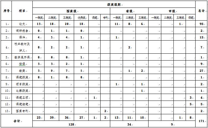 (表1)2018年教科研成果获奖一览表
