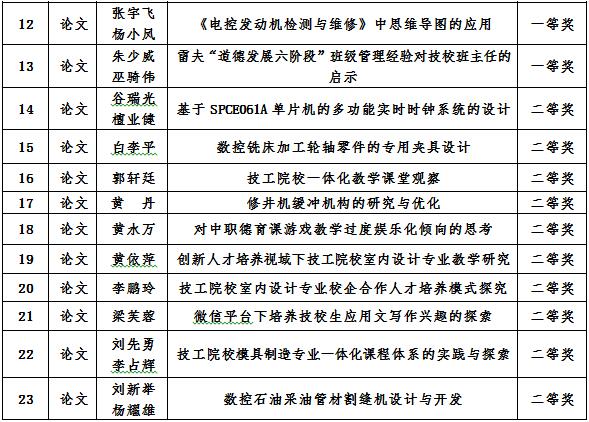 (表4)2018年《广东技工教育研究》优秀论文评选获奖名单