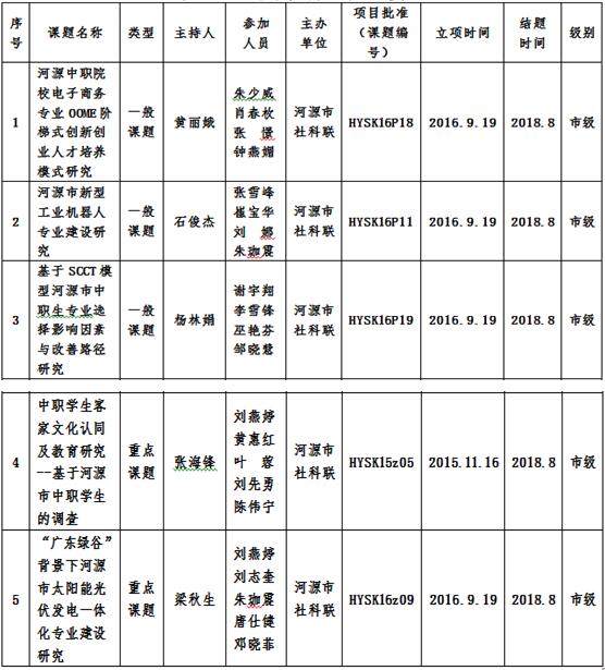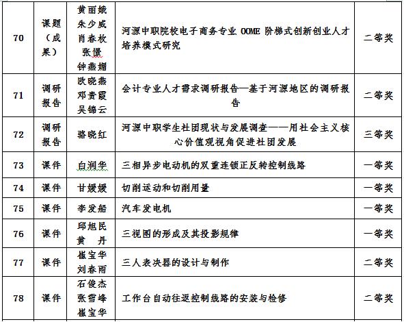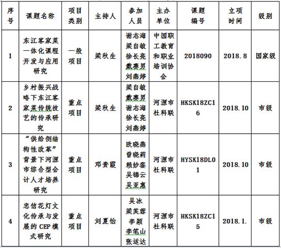 河源技师学院2018年教研成果一览表