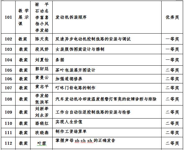 心理教师教学能力设计比赛获奖名单
