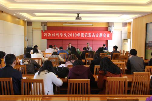 为进一步推进我院2019年度意识形态工作,落实中央、省委、市委关于意识形态工作的文件精神和相关要求,2019年3月4日上午,我院在行政楼大会议室召开2019年意识形态工作专题会议,总结我院2018年形式形态工作,部署2019年全院意识形态工作要点。会议由学院党委书记张海锋同志主持,学院党委委员、中层管理干部(含副职)和教学系正副主任参加了会议。