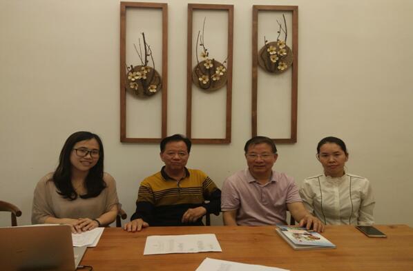 (图一)梁秋生副院长、梁自敏老师与大埔小吃文化城的培训老师讨论