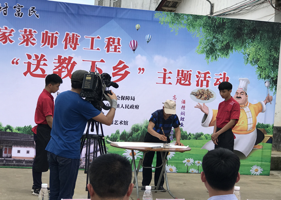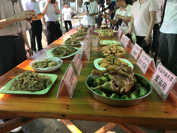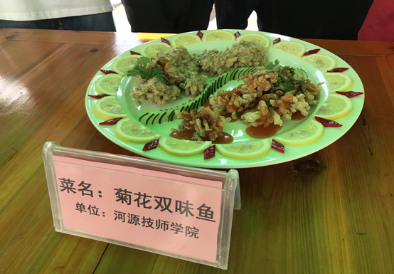 随后,在河源好人成木源先生的题字后,各村厨艺高手开始制作特色菜、拿手菜。同时,我院谢志海老师示范制作客家特色创新菜——菊花双味鱼。