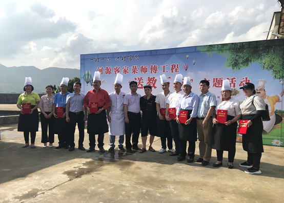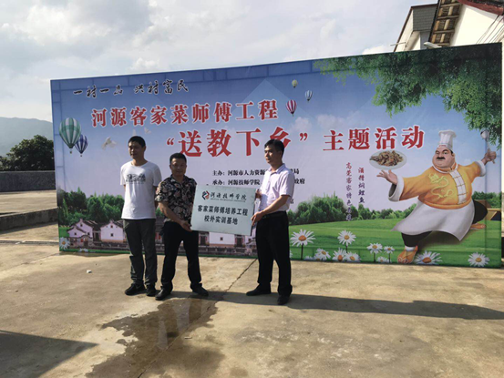 5月16日,由河源市人力资源和社会保障局主办,河源技师学院、高莞镇人民政府承办的“河源市客家菜师傅送教下乡主题活动”在高莞镇中平村举行。河源技师学院副院长邓德兴、副院长刘俊侃、高莞镇镇长曾力文、高莞镇党委书记曾少勇等出席了活动。
