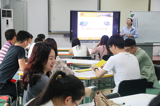 为了提高各系微信公众号的运营水平,提升各系专业的特色宣传成效,进一步传播校园正能量,2019年5月30日下午,我院在实训工厂汽车智慧教室举行微信公众号运营的专题培训。各系正副主任、各科室宣传员、各系办事员、各系微信公众号负责人参加了此次培训。培训由学院办公室的冯艳丹老师主讲。