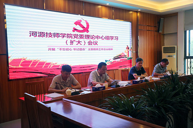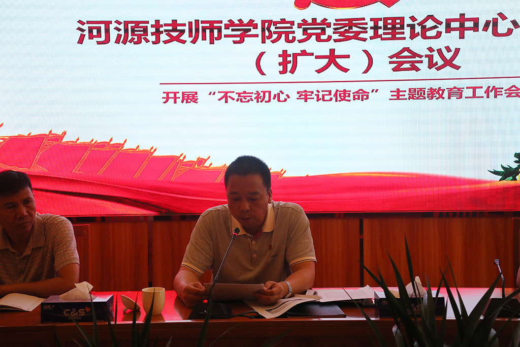 2019年5月29日上午,我院在一号楼大会议室召开理论中心组学习(扩大)会议,传达学习“不忘初心 牢记使命”主题教育工作会议精神。学院党委会委员、各党支部书记、中层管理干部和各教学系正、副主任参加了会议。