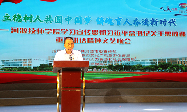 为深入学习贯彻习近平新时代中国特色社会主义思想,习近平总书记3·18学校思政课教师座谈会重要讲话精神,6月10日晚,我院在河源市文化馆举行了“立德树人共圆中国梦 铸魂育人奋进新时代”专场文艺晚会。市人社局副局长