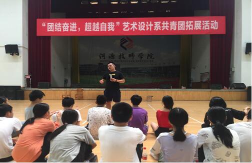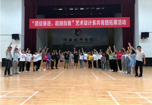 为了加强团学会学生凝聚力,培养学生不畏艰险、勇于奉献的团队精神,促进学生交流沟通的能力,2019年9月8日,在艺术设计系主任李娜、副主任于海燕、团总支书记袁灏的带领下,艺术设计系38名团学会学生干部在体育馆开展了以“团结奋进,超越自我”为主题的拓展训练活动。