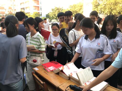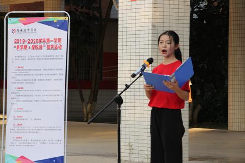 为庆祝新中国成立70周年,引导同学们走进图书馆阅读,养成良好的阅读习惯。2019年9月25日,图书馆在培训楼B栋广场举办“歌颂祖国”诗歌朗诵比赛暨赠送图书活动。图书馆读书协会和朗诵爱好者近100人参加了活动。
