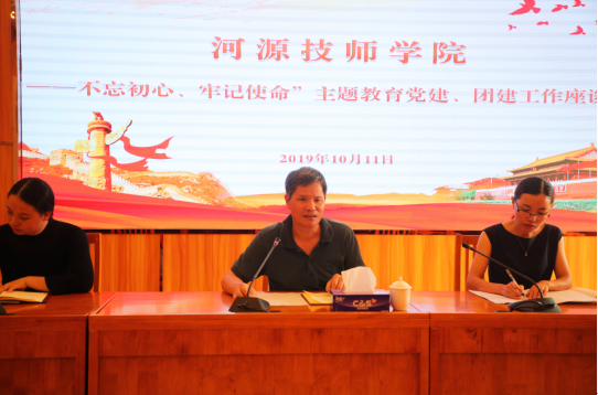 为深入开展“不忘初心、牢记使命”主题教育活动,落实学院党建带团建的任务,加强党建带团建的意识形态工作,筑牢学生思想防线。2019年10月11日,我院在行政楼大会议室召开“不忘初心、牢记使命”主题教育党建带团建座谈会。会议由学院副院长张运达同志主持,学院团委书记骆晓红、学院督导室副主任李辉、学生科副科长柳铁非以及各系党支部书记和团总支书记参加了会议。