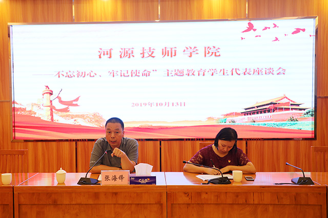 为深入推进“不忘初心、牢记使命”主题教育,了解学生对学院党员教师在校发挥先锋模范作用情况,2019年10月13日晚,我院在1号楼大会议室召开了“不忘初心、牢记使命”主题教育学生代表座谈会。学院党委书记、院长张海锋,主题教育工作组成员,学生代表参加了此次会议。