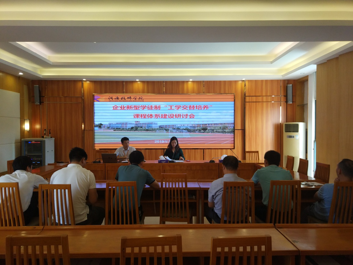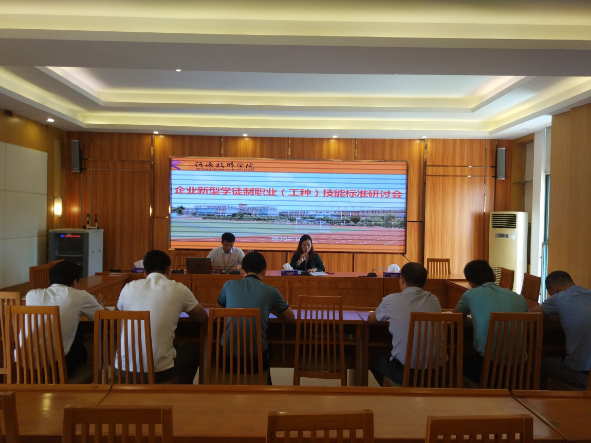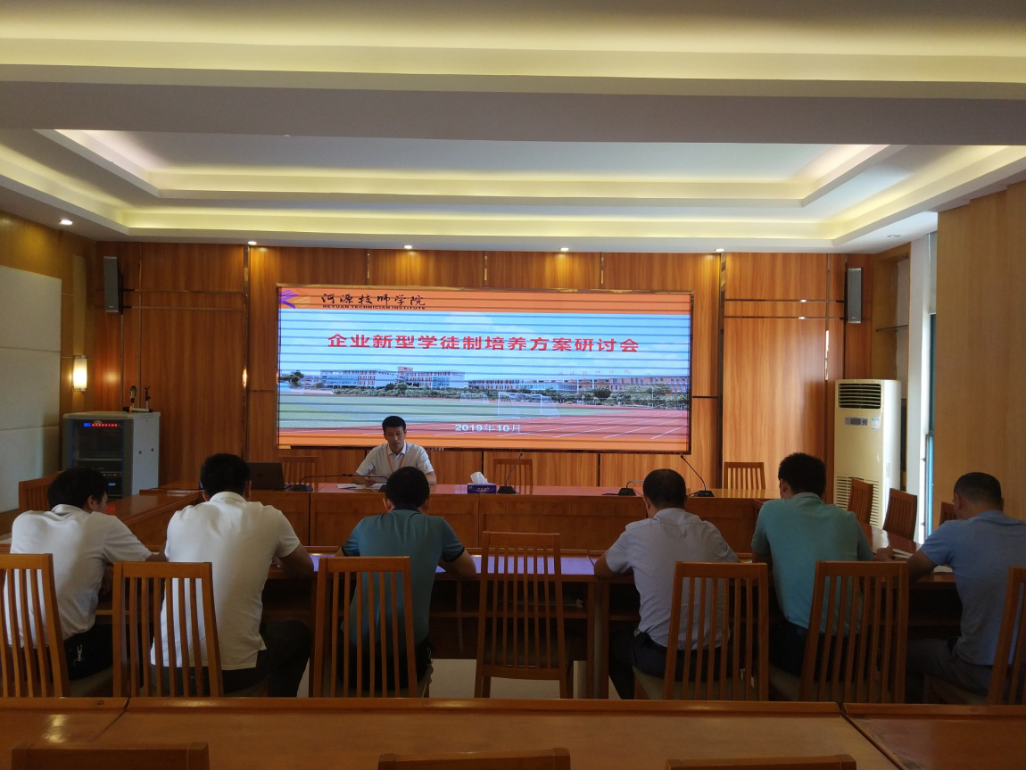 2019年10月16日上午,我院在1号楼大会议室召开企业新型学徒制工作会议。教务科科长杨耀雄、培训科科长丘丽敏出席会议,模具制造、机电一体化、电气自动化设备安装与维修、电子技术应用等专业教研组长、2019年市级课题《推行企业新型学徒制策略研究》课题组成员参加会议。会议由教务科科长杨耀雄主持。