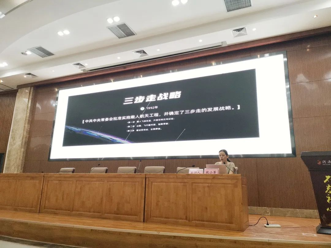 神舟冲天,嫦娥探月、天宫天问......探索浩瀚宇宙,发展航天事业,建设航天强国,是我们不懈追求的航天梦。如今,让我们再度起飞,扬航天精神,创美好未来。为鼓励同学们树立航空航天精神,培养爱国情怀和时代担当,9月13日晚,思政建设中心欧小芳老师为学生带来了一场“中国人的飞天梦”的主题讲座。
