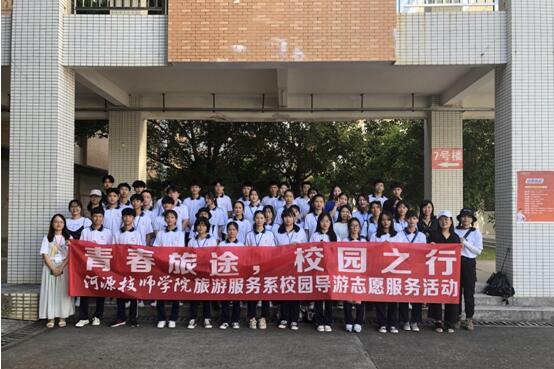 校园迎新的靓丽风景线——旅游服务系开展校园导游“青春旅途”活动 9月21日,新生报到后的第一周,旅游服务系旅游专业的学生分批带领全系2020级新生开展校园导游“青春旅途”主题活动,带领他们游览河源技师学院校园。(图一)在“德”字文化墙讲解“校园导游”由旅游专业20...