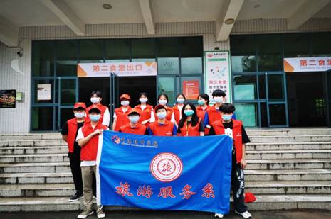 “疫”食无忧--旅游服务系团学会开展食堂志愿者服务 5月26日,旅游服务系团学会在学校食堂组织了志愿者服务活动。系团总支书记何莉雅老师,2018级团学会干部共12人参加此次活动。(图一)志愿者劝说学生间隔用餐(图二)志愿者指导学生间隔排队 为保证食堂的安...