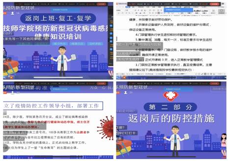 旅游服务系开展预防新型冠状病毒感染肺炎健康知识培训 5月10日,旅游服务系全体教职工在学院的统一组织下,通过“钉钉”APP在手机上开展预防新型冠状病毒感染肺炎健康知识培训会。培训会由陈伟宁老师主讲。(图一)陈老师在讲述新冠知识首先,陈老师通过此次会议,传达了...
